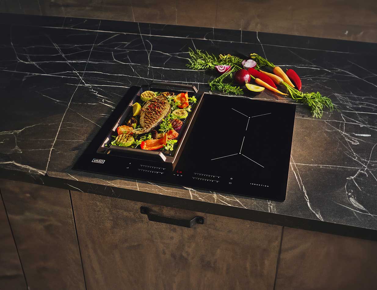 Использование на варочной панели с функцией Bridge позволяет готовить на всей поверхности и при более высокой температуре, что идеально для приготовления сочных стейков