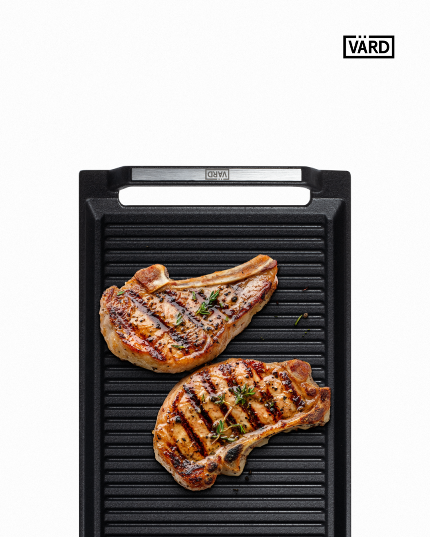 Ребристая поверхность гриль-планчи позволяет лишнему маслу стекать в специальные углубления, делая блюда более полезными и оставляя аппетитный рисунок на каждом кусочке. Теперь барбекю можно устроить в любую погоду и время года, прямо у вас дома.