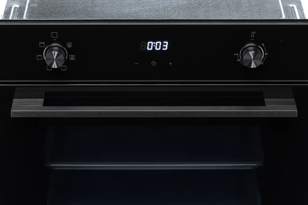 Благодаря тому что регуляторы утапливаются, духовой шкаф имеет стильный облик, а мыть плоскую панель управления становится легко и удобно.