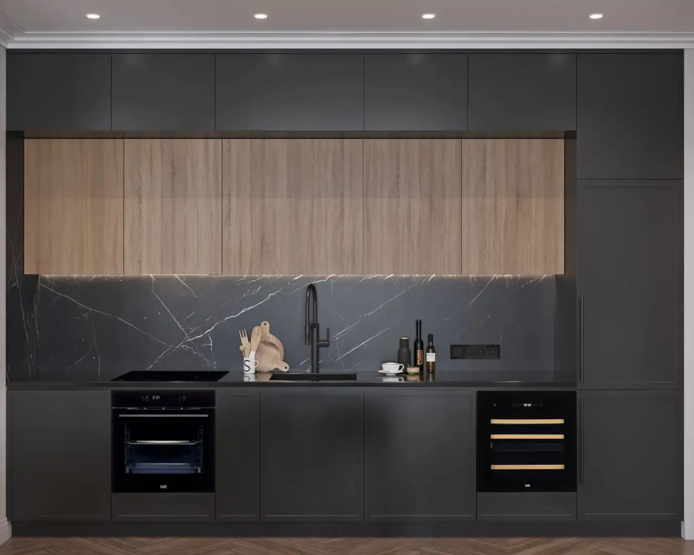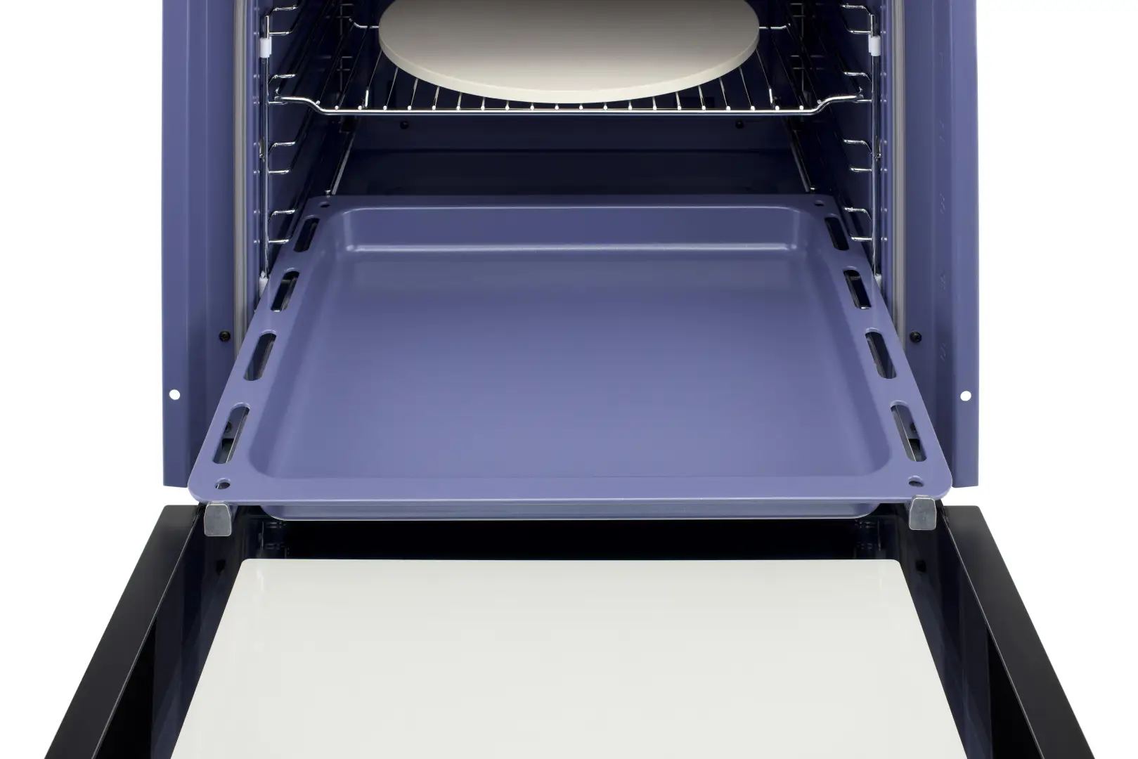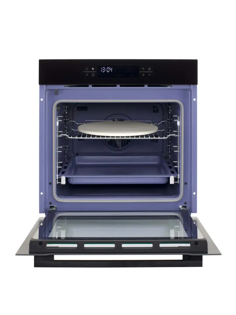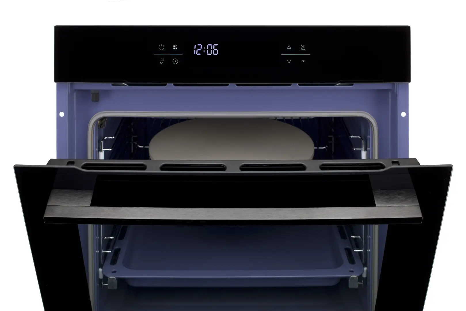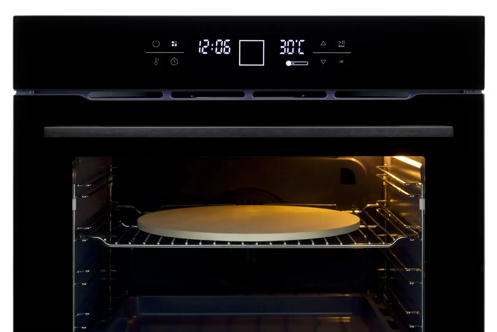 Вcтраиваемый духовой шкаф черного цвета с камнем для пиццы и внутренним антипригарным покрытием ColdPyro® сделает выпечку еще вкуснее, а уход за прибором еще проще.