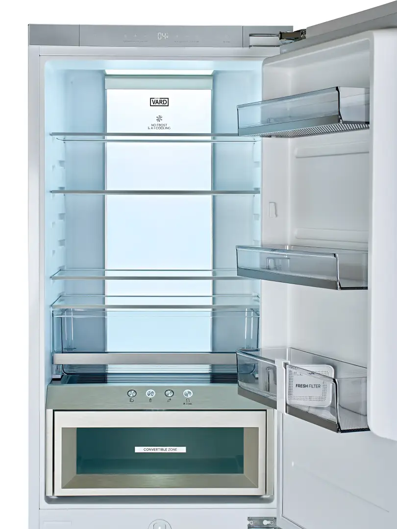 Convertible Zone представляет собой расположенное в нижней части холодильника отделение. Оно может использоваться для продуктов, требующих особых условий хранения, например мясных изделий, морепродуктов, при более низких температурах. В зависимости от того, что именно будет храниться в зоне свежести, вы можете установить нужную температуру в диапазоне от 0 до +4 °C, воспользовавшись сенсорной панелью управления.
