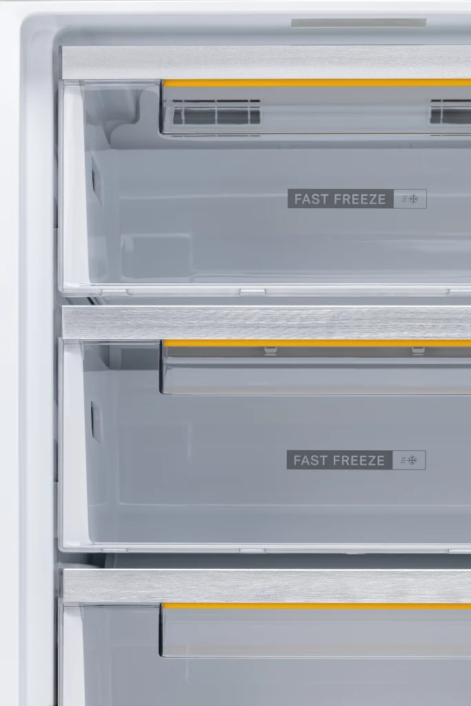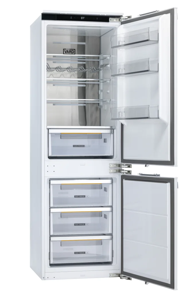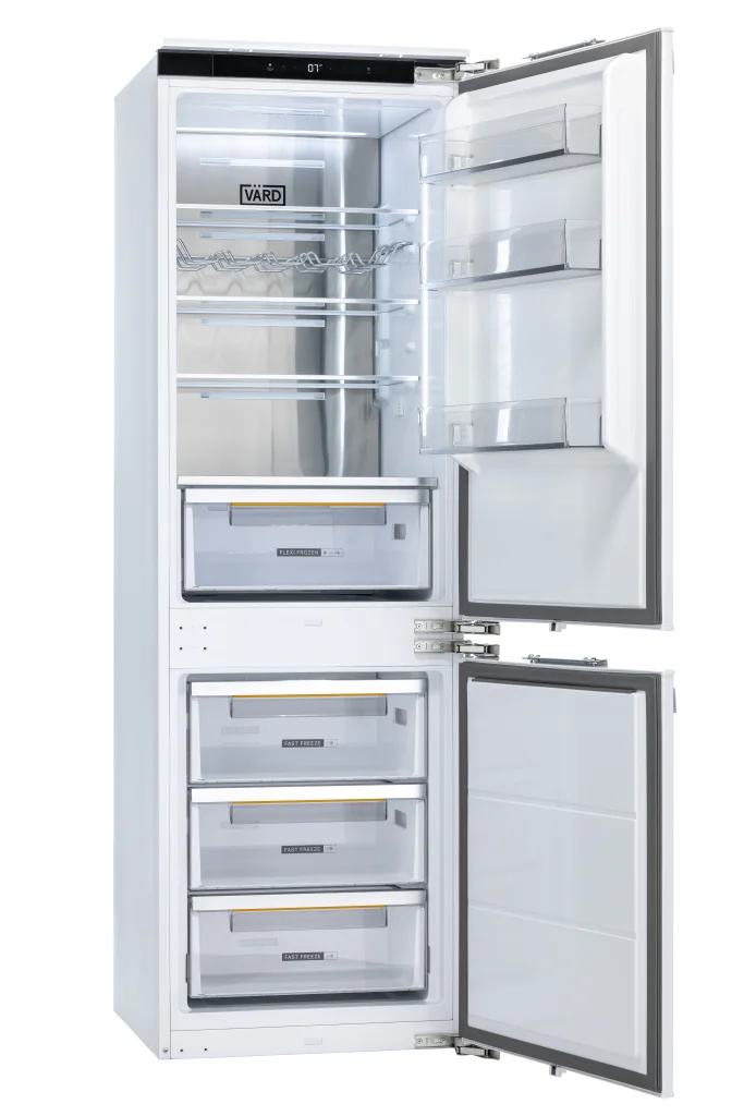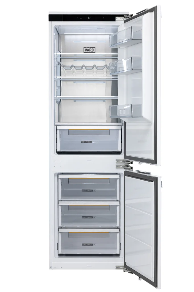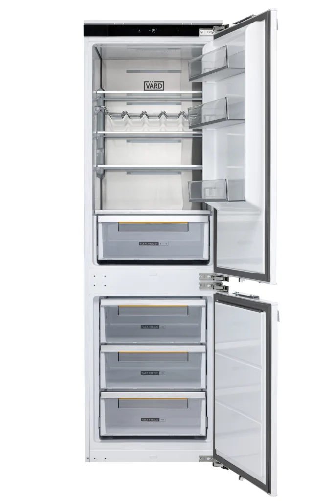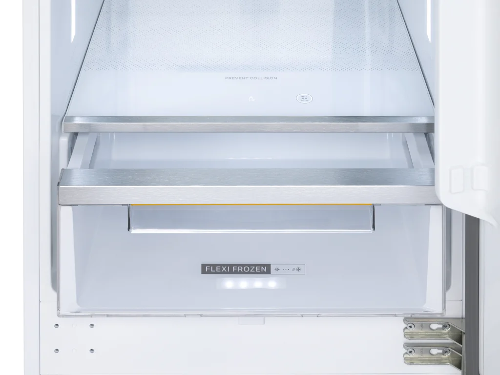 Встраиваемый двухкамерный холодильник с нижней морозильной камерой сочетает в себе премиальный дизайн и передовые технологии.