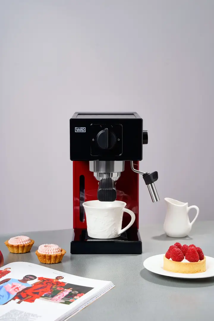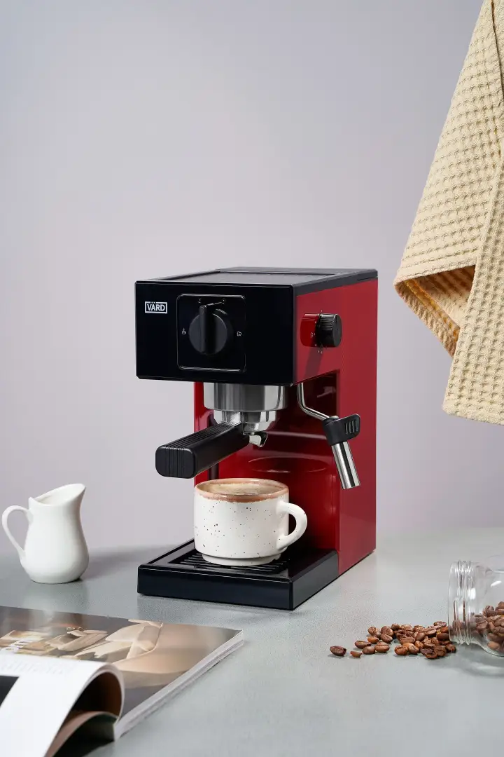 Кофеварка бордового цвета станет стильным и ярким ярким акцентом любой современной кухни