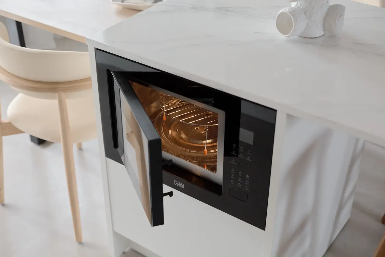 Встраиваемая микроволновая печь черного цвета сочетает в себе функциональность и лаконичный дизайн без выступающих элементов, что позволяет установить ее в любую современную кухню.