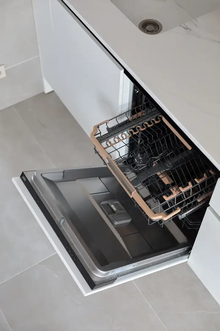 Луч на полу показывает, что посудомоечная машина работает, а цикл пока не завершён. С ним вы можете быть уверены: она включилась и начала мойку.