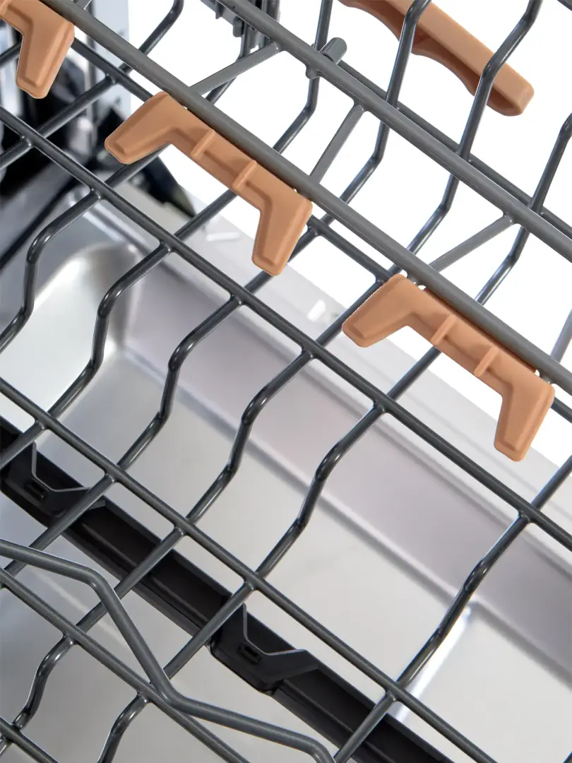 Защитные держатели из мягкого, но прочного силикона позволяют зафиксировать бокалы в корзине, предотвращая их повреждение в процессе мойки.