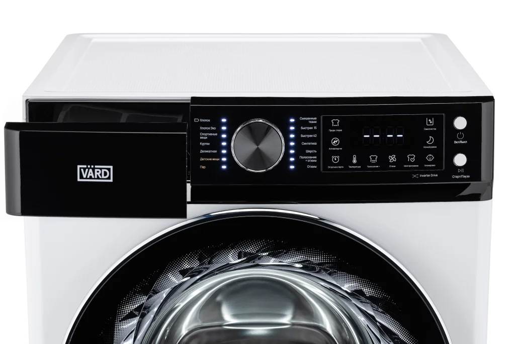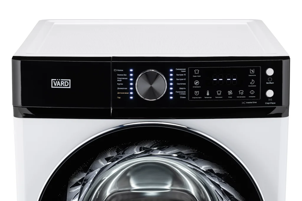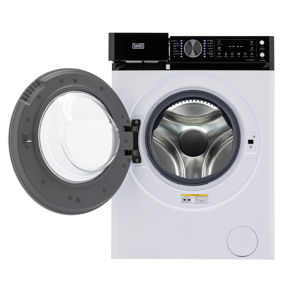 Стиральная машина белого цвета с максимальной загрузкой 10 кг и скоростью отжима 1400 об/мин обладает стильным лаконичным дизайном и большой вместительностью.