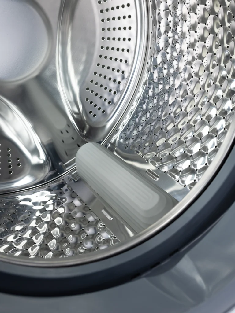 Гладкое покрытие и особая, выпуклая форма внутренней поверхности барабана стиральной машины снижают воздействие на одежду в процессе стирки: на вещах не остаётся зацепок, они меньше изнашиваются.