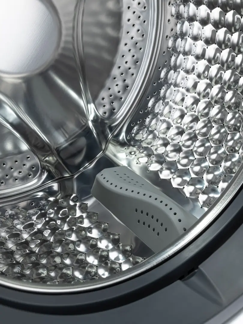 Гладкое покрытие и особая, выпуклая форма внутренней поверхности барабана стиральной машины снижают воздействие на одежду в процессе стирки: на вещах не остаётся зацепок, они меньше изнашиваются.