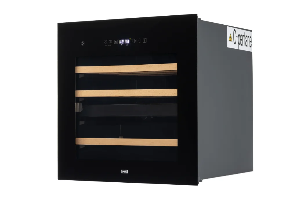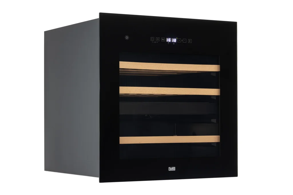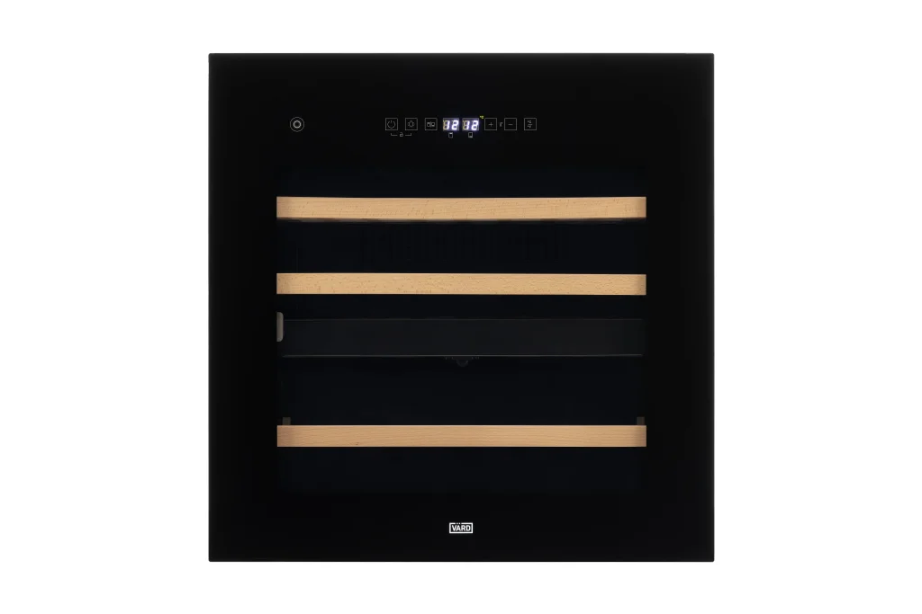 В отличие от стандартных моделей, сенсорное управление размещено на дверце, а не внутри холодильника. Чтобы изменить температуру хранения вина, его не нужно открывать, предотвращая тем самым попадание тепла в холодильник.