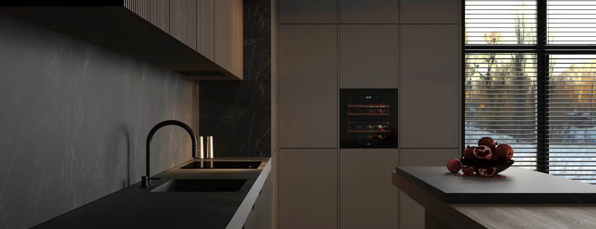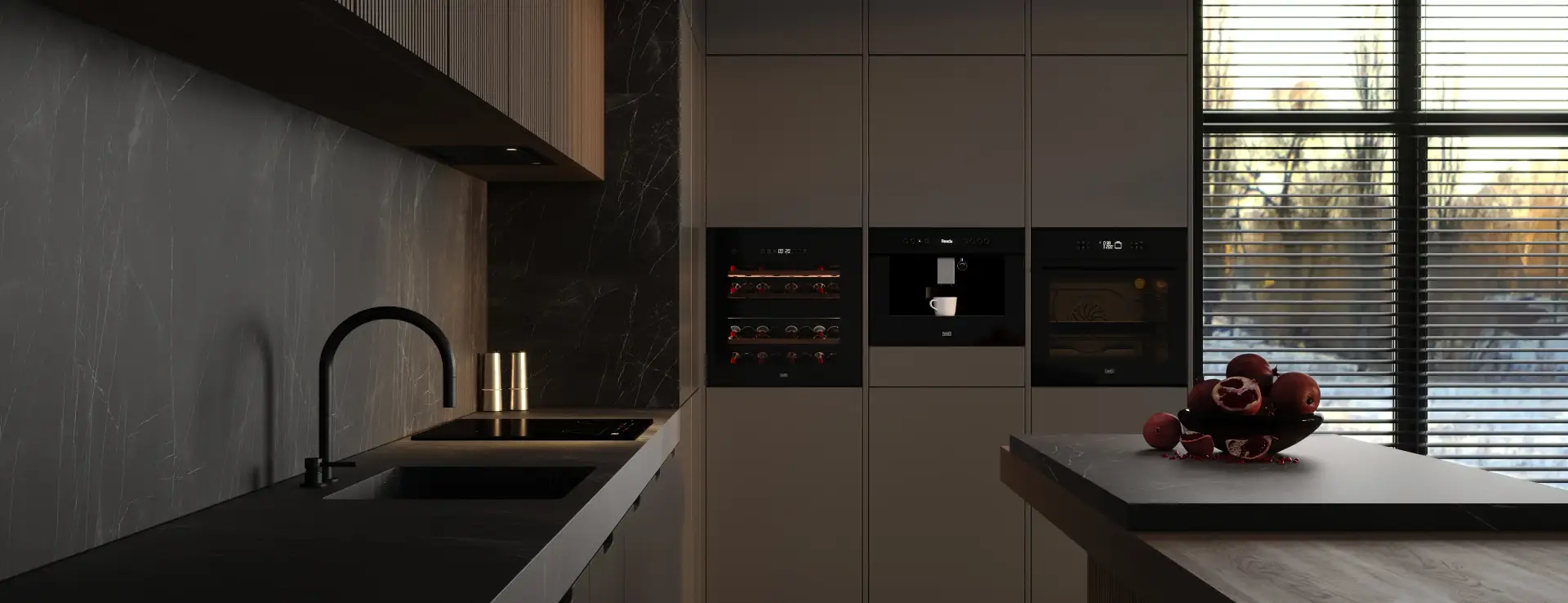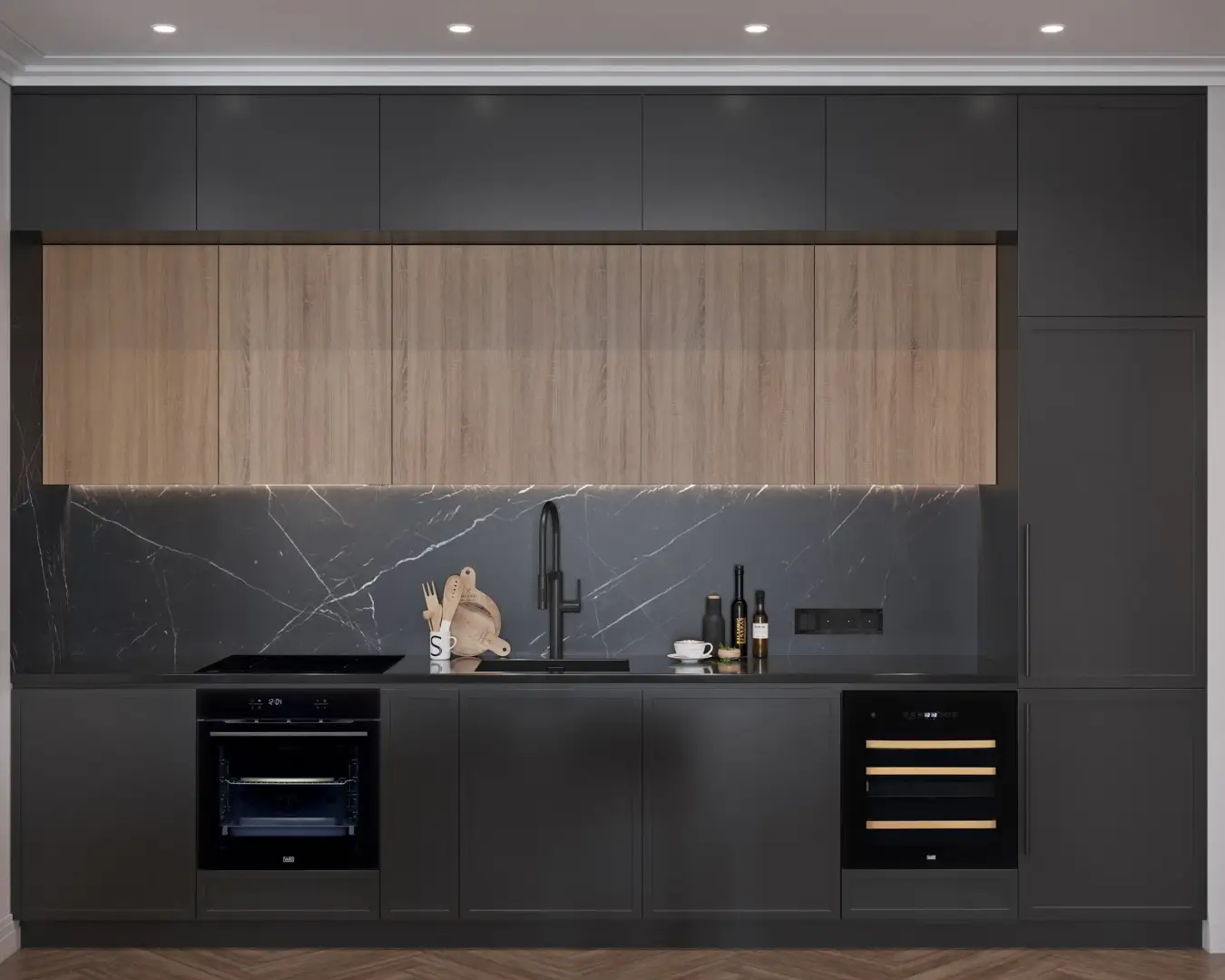 В лаконичном дизайне дверцы винного шкафа нет ручки — она открывается лёгким касанием при помощи механизма Touch-to-open.