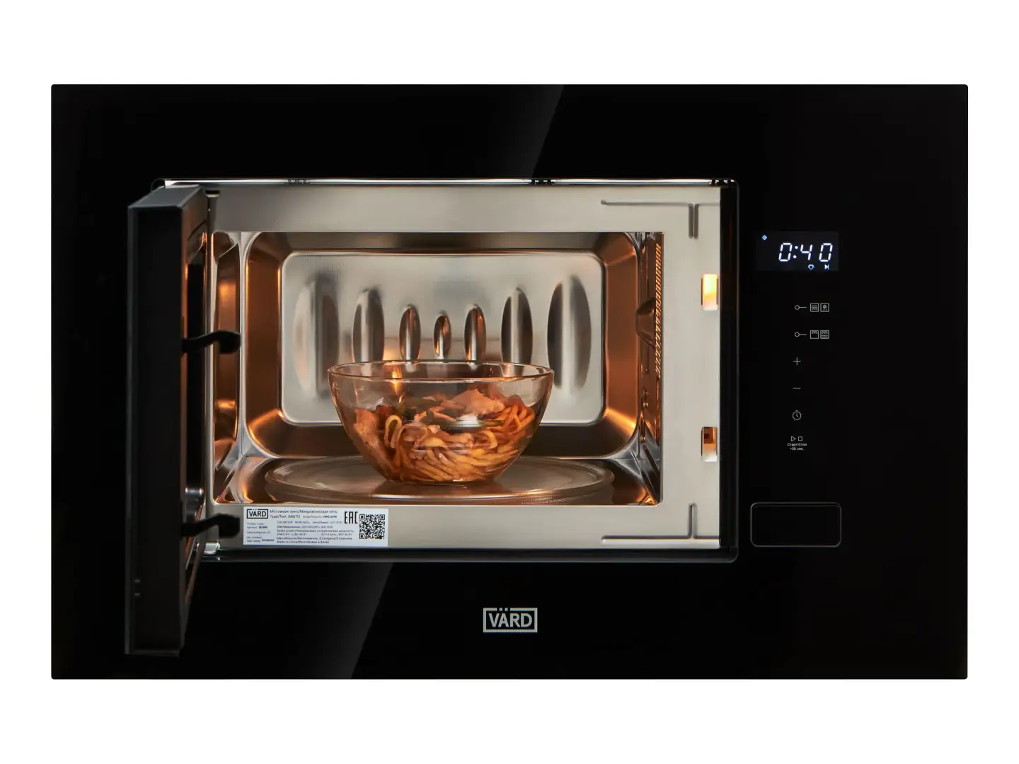 Встраиваемая микроволновая печь черного цвета выделяется компактным размером, благодаря которому ее можно установить даже в навесной шкаф. А интуитивно понятное сенсорное управление позволяет с легкостью установить нужный режим и быстро разогреть любимое блюдо.