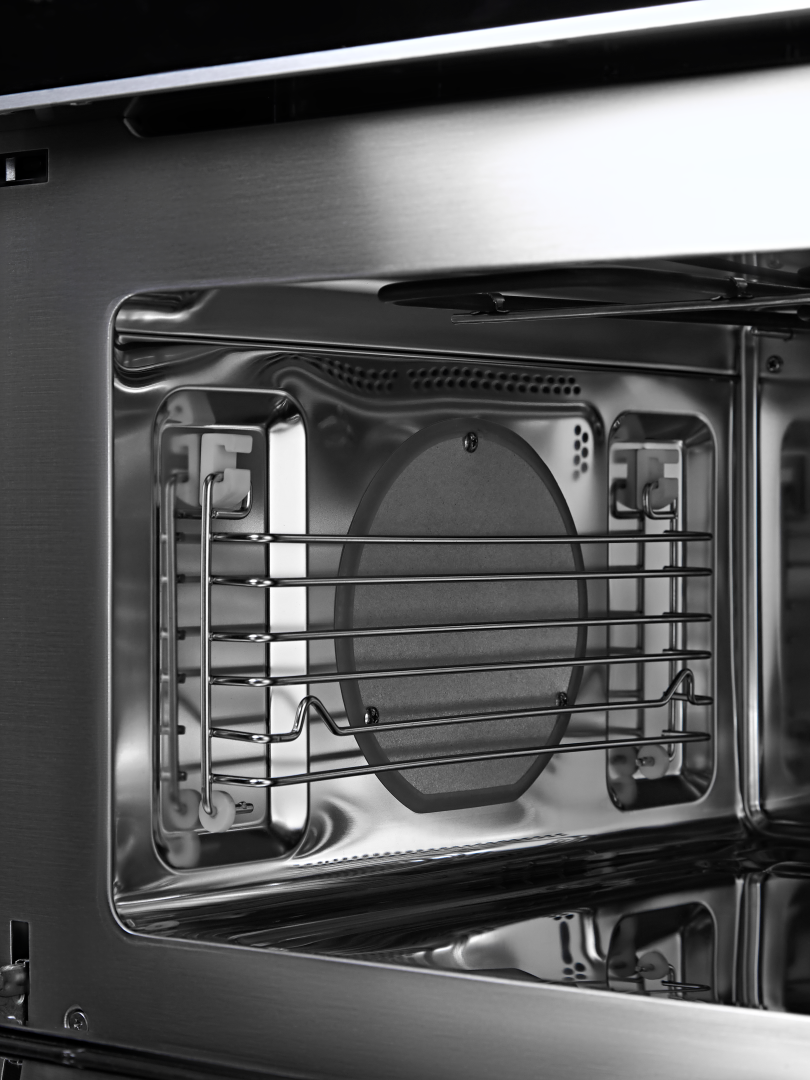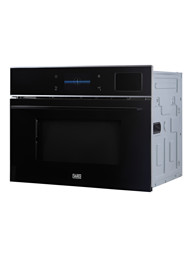 Компактное устройство 3 в 1 объединяет функции духового шкафа, микроволновой печи и пароварки, что позволяет экономить пространство на кухне и упростить процесс приготовления блюд за счёт комбинированных режимов.