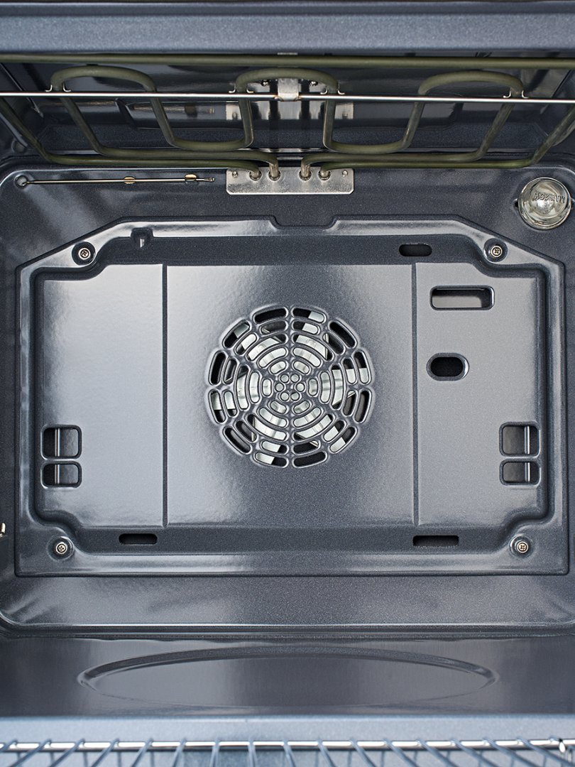 Выполненная в эффектном сером цвете эмаль духового шкафа произведена по технологии, облегчающей очистку после использования.