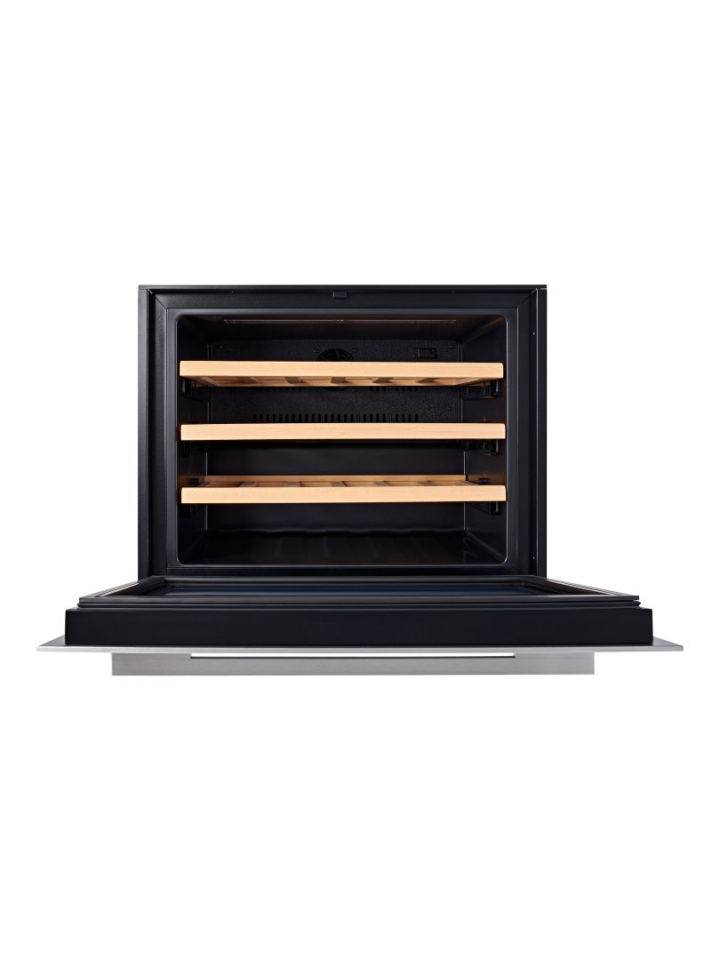 При всей своей компактности узкий холодильник для вина вместителен и удобен в использовании, а его дизайн прекрасно сочетается с другими приборами элегантной коллекции: компактным духовым шкафом и кофемашиной.