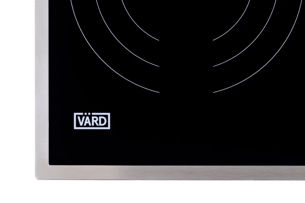 Металлическая рамка помогает сохранить идеальный внешний вид стеклокерамической поверхности, защищая края от сколов. Помимо этого, рамка препятствует разливу жидкости по столешнице и визуально сочетается с металлическими деталями оформления кухни.